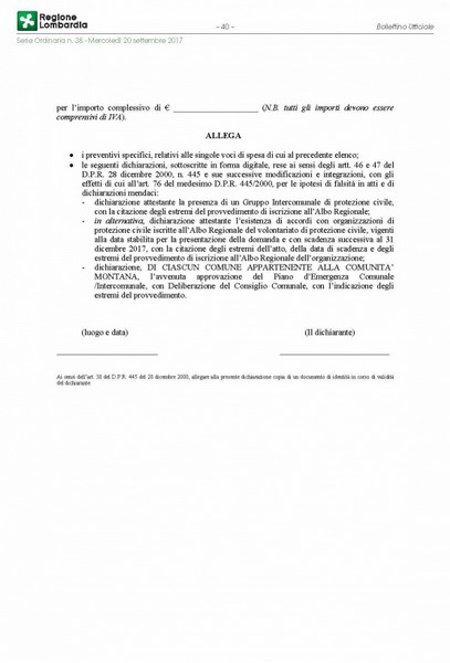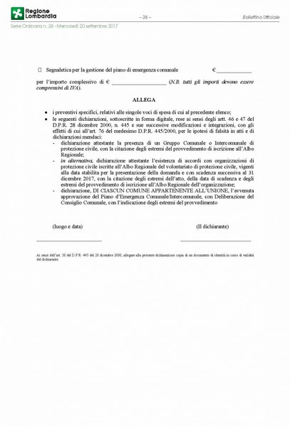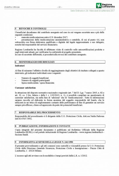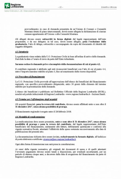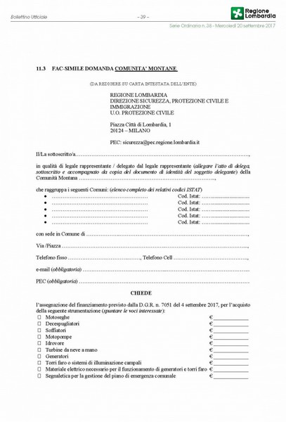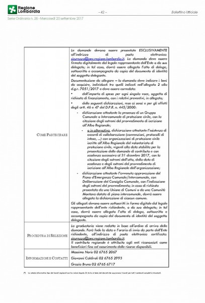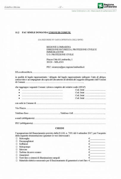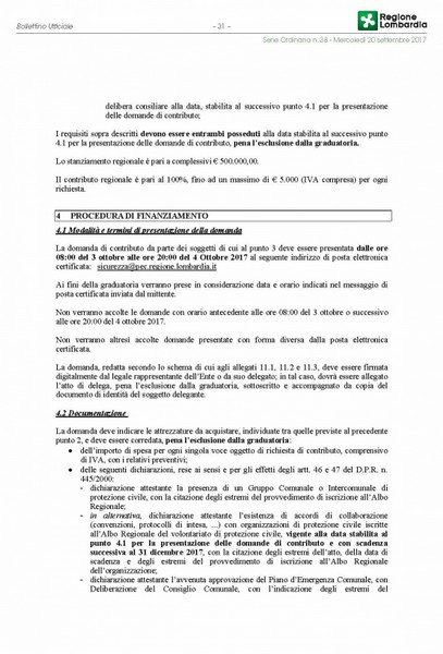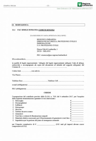 Le domande stesse dovranno essere inviate alla casella PEC della Direzione Sicurezza, Protezione Civile e Immigrazione: sicurezza@pec.regione.lombardia.it